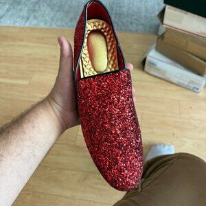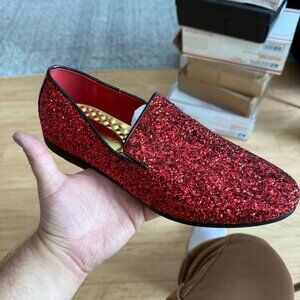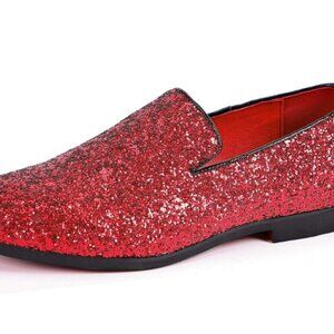 Santimon Men's US 9, 12 Red Glitter Slip On Loafers Sequin Dress Shoes