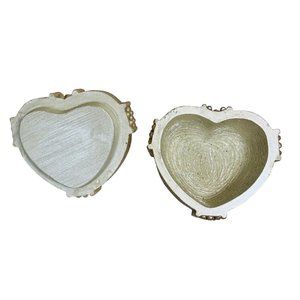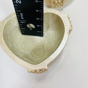 Santini Heart Trinket Box 3D Ribbon Rhinestone 3" Gold Colored Textured