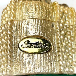Santini Golden Heart Trinket Box Rhinestone 3" Palm Beach Regency Signed Stamp