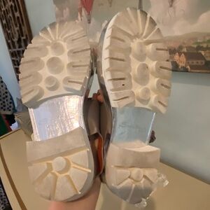 Elegant gray sandals with vibrant orange accents. Comfortable and stylish for any outing. K ow in Italy for stylish comfort that you can walk all day in size 37 1/2