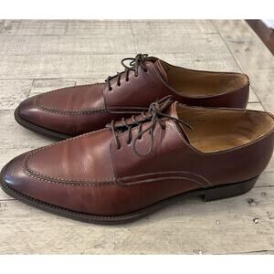 Santoni Men’s 12 Kenton Oxford Dress Shoes Brown Leather Almond Toe Lace Up