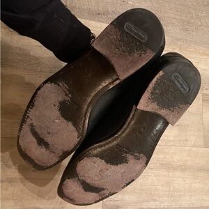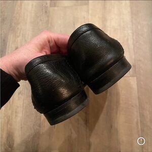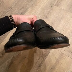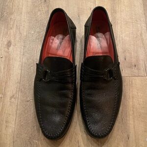 Santoni Italian leather slip on loafers in black, size men’s 11.5 with a one sided buckle detail. Great preowned condition; some wear to the tread and a scuff to the side leather as shown in pictures.