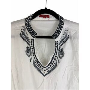 Santoori white tunic with beaded neckline - size L Excellent Condition. Pet and Smoke free home. Bundle and Save!