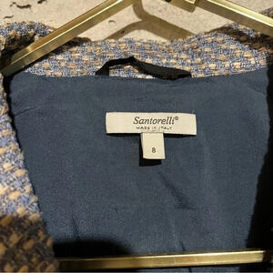 Santorelli Italian Blazer Jacket Faux Wrap Front Tweed Blue Brown Women’s 8