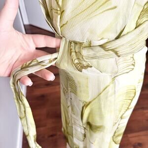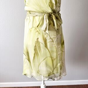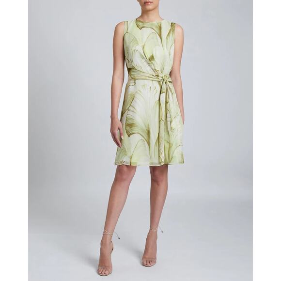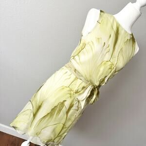Santorelli Nadia Lime Lily Pad Print Chiffon Knee Length Dress Women’s Size 40