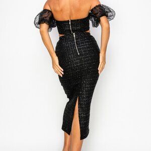 If you love Chanel, this set will capture your heart. The top features elegant puff sleeves with a chic back zipper, paired with a timeless tweed skirt for a sophisticated look. Crafted from high-quality fabric, this set exudes class. Please note: the material has no stretch, so we recommend sizing up for the best fit.