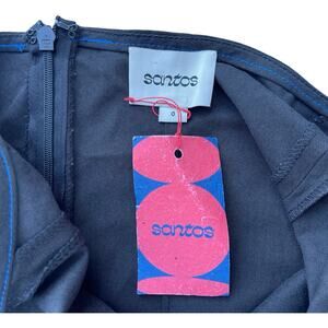 * Santos by Monica, denim halter dress, wrap mini dress, collar detail dress, New York designer, sustainable fashion, minimalist chic, Y2K revival, mod inspired, retro mini dress, indigo blue dress, conscious design, small batch handmade, boutique style, coastal cool, city chic, elevated casual, date night outfit