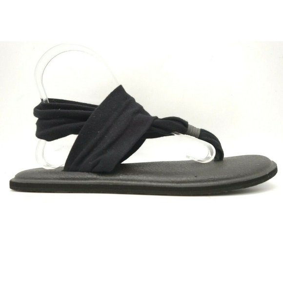 Sanuk Black Stretch Strap Casual Slingback Thong Sandals Shoes Women's 9