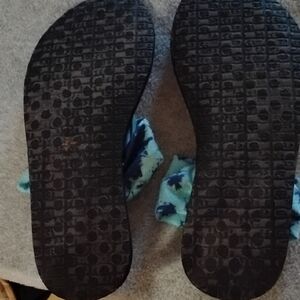 Stylish sandals with a blue and black tie-dye design. Perfect for casual outings.