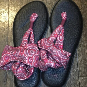 Sanuk Burgundy Multi Radio Love Yoga Sling Sandals Women’s Size 8