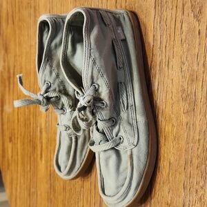 Sanuk Chukkas Vee Shawn Boat High Top Size 8 Spot on top left shoe. Normal wear preowned condition