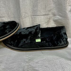 Sanuk Donna Cruz Black Crushed Velvet Slip On Women's Size 9 - no box