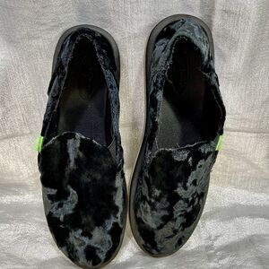 Sanuk Donna Cruz Black Crushed Velvet Slip On Women's Size 9