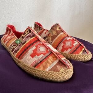 Sanuk Espadrile Slip-On Woven Aztec Southwestern Beach Jute Trim Sole Flats -SZ7
