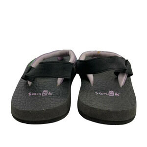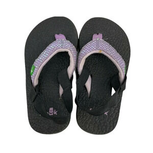 Sanuk Flip Flops Toddler Sz 7/8 Black Purple Glitter Flat Cozy Thong Back Strap