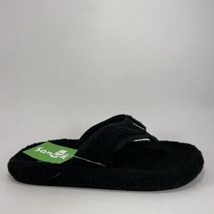 Sanuk Furreal Classic Chill Fuzzy Flip Flops Womens Size 7 Black Sandals Thong