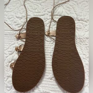 Good condition, slight wear on front of sandal. Comfy soles and fits TTS