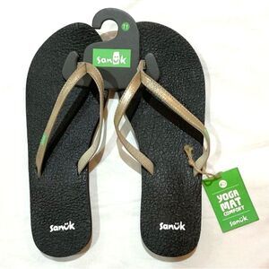 Sanuk Gold Metallic Flip Flops Thongs Sandals Sz 11 Yoga Spree 4 New Casual