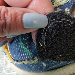 Adorable little striped canvas slip on loafers with raw edge design. Sanuk makes shoes that wear like sandals. Comfy and great for play. Miles and miles of funstoppable smiles! Canvas slip-on with cotton canvas lining. High rebound, molded EVA footbed featuring an antimicrobial additive designed to reduce odor causing bacteria. Happy U rubber sponge outsole. Hook and loop closure.
