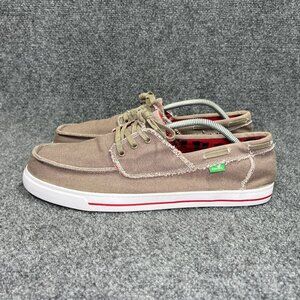 Sanuk Lite Boat Shoes Men's Size 13 Tan Canvas Low Lace Casual Comfort Sneakers