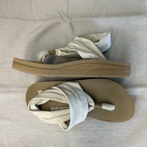 These sandals have never been worn outside. I wore them around the house 1 time and decided they were not for me,