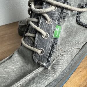 Sanuk Stevie Boots Canvas Mid Calf Lace Up Gray Flat Casual Shoes