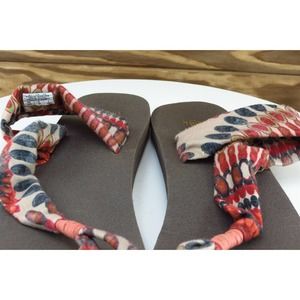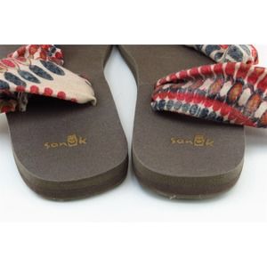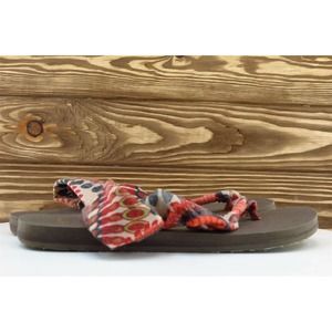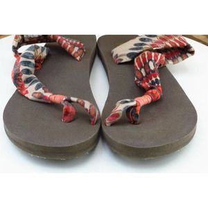 Sanuk Sz 7 M Red Slingback Fabric Women Sandals