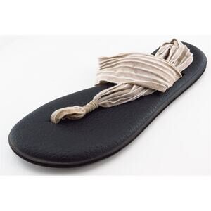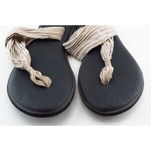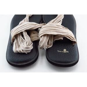 Sanuk T-Strap Sandals Beige Fabric Women Shoes Size 8 Medium