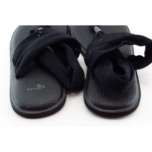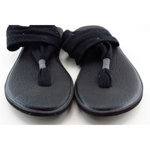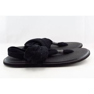 Sanuk T-Strap Sandals Black Fabric Women Shoes Size 9 Medium