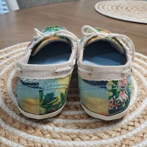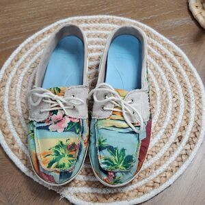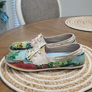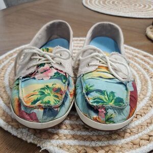 Sanuk Tropic Sail Away Natural Banana Canvas Boat Shoes Woman’s 11, Great condition