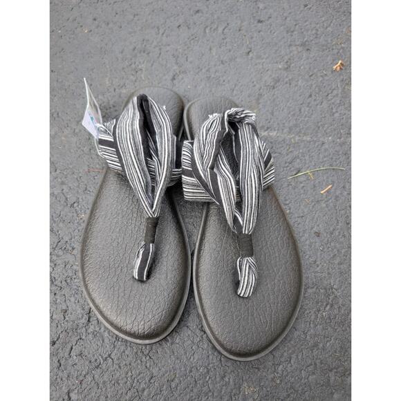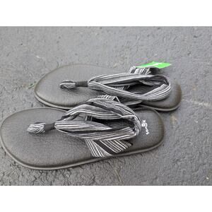 Sanuk Women's Yoga Sling Back Thong Sandals Sz 10 Black White Yoga Mat Comfort. Shoes with tags but do not have a box.