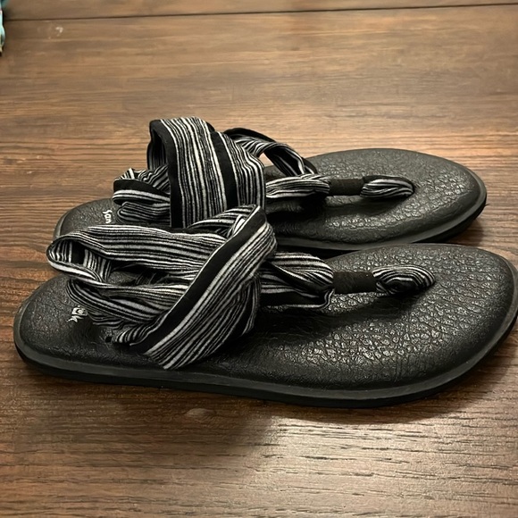 Sanuk Women's Yoga Sling Black Sandals Yoga Mat Slip On Flip Flops, size 7