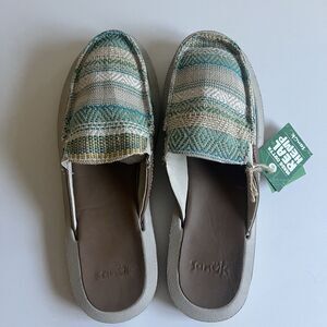Sanuk Women’s You Got My Back St Artesano Blue Green Mules Slip On Size 10