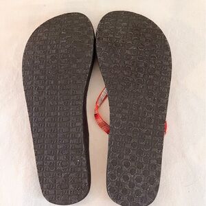 Sanuk Yoga Joy Coral Stripe Flip Flop Sandals Size 10