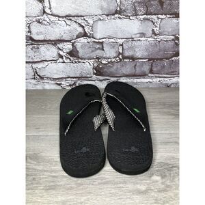 Elevate your yoga practice with these Sanuk Yoga Mat sandals. Designed for women, these black flip flops feature a cushioned insole for ultimate comfort during long sessions. The leather upper material ensures durability and a medium (B, M) shoe width provides a snug fit.