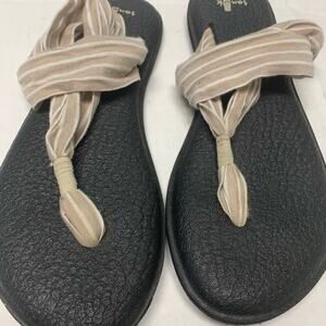 Sanuk Yoga Sling 2 Beige White Stripe Sandals Size 8