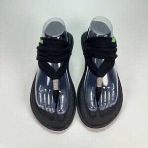 Sanuk Yoga Sling 2 Black Flip Flop Slingback Yoga Sandals SWS1001 Women's Size 9