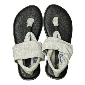 Sanuk Yoga Sling 2 Sandals, gray, lightweight, yoga mat material, two-way stretch knit fabric upper, women's size 6.