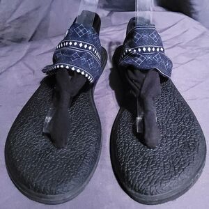 Sanuk Yoga Sling 2 Sandal, Women's Size 10 Blue Print memory foam sandals!