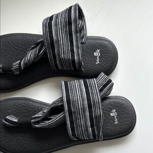 Sanuk Yoga Sling Black Sandals with Striped Straps Women's Size 8