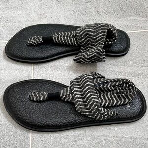 Sanuk Yoga Sling Sandals with a Black and White Pattern Size 8