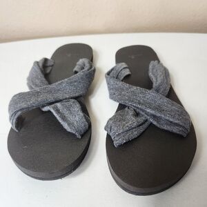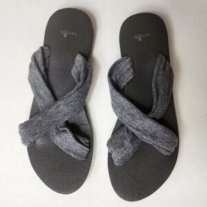 Sanuk Yoga X-Hale Gray Black Cross Strap Slip On Sandals-Size 9