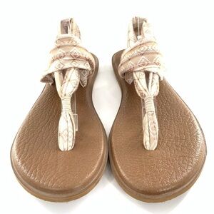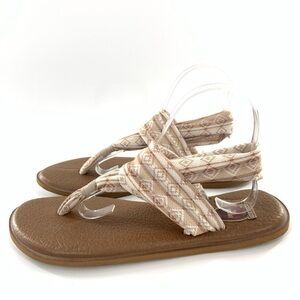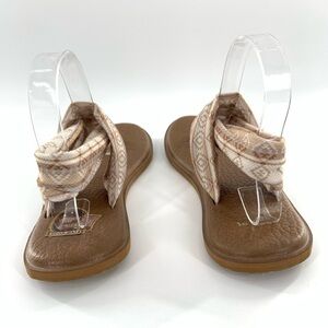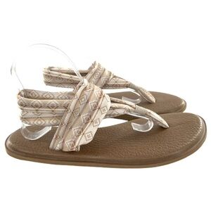 Sanuk womens sandals size 10 41 tan cream tribal print yoga thong comfort festival bohemian