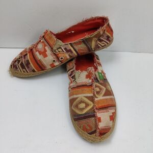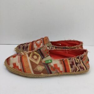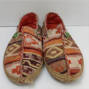 Sanuk sidewalk Surfer Flat Loafer Shoes Orange /Multi Geometric Canvas Sz 7