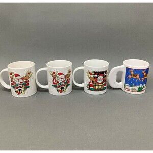 Sanyei Coffee Cups Christmas Santa Claus Reindeer Multicolor 3 3/4" Lot of 4