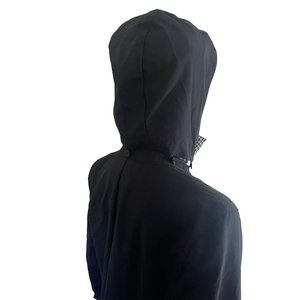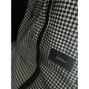 Sanyo Long Sleeve Button Closure Hood Houndstooth Trench Coat Jacket Black - Size 12