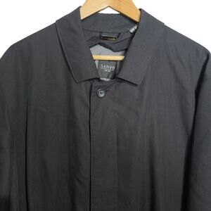 Sanyo Mens Black Lined Trench Coat Lightweight Lined 3/4 Length Dressy sz 46L