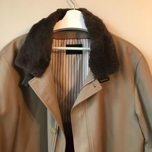 Good condition! There’s a few signs of wear by left back hip. Little stain on left cuff(both pictures). Super comfortable and light weight. Warm lining. Nice inner pockets. Size XL. Faux fur collar. Even has collar tab.