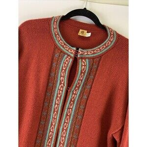 Sanyork Fair Trade Alpaca Sweater Cardigan Peru Red Design Trim Lightweight Med.