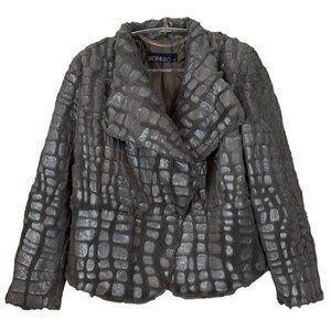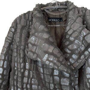 SaoPaulo Faux Fur Leather Shiny Animal Print Snap Coat Jacket Gray Size 42 US 10